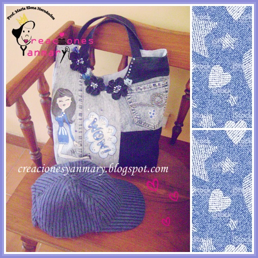 Aquí le muestro este primer proyecto..........el regalo de cumpleaños para mi hermana con materiales como: jeans en desuso, tela para el forro, pintura para tela blanca y lentejuelas.